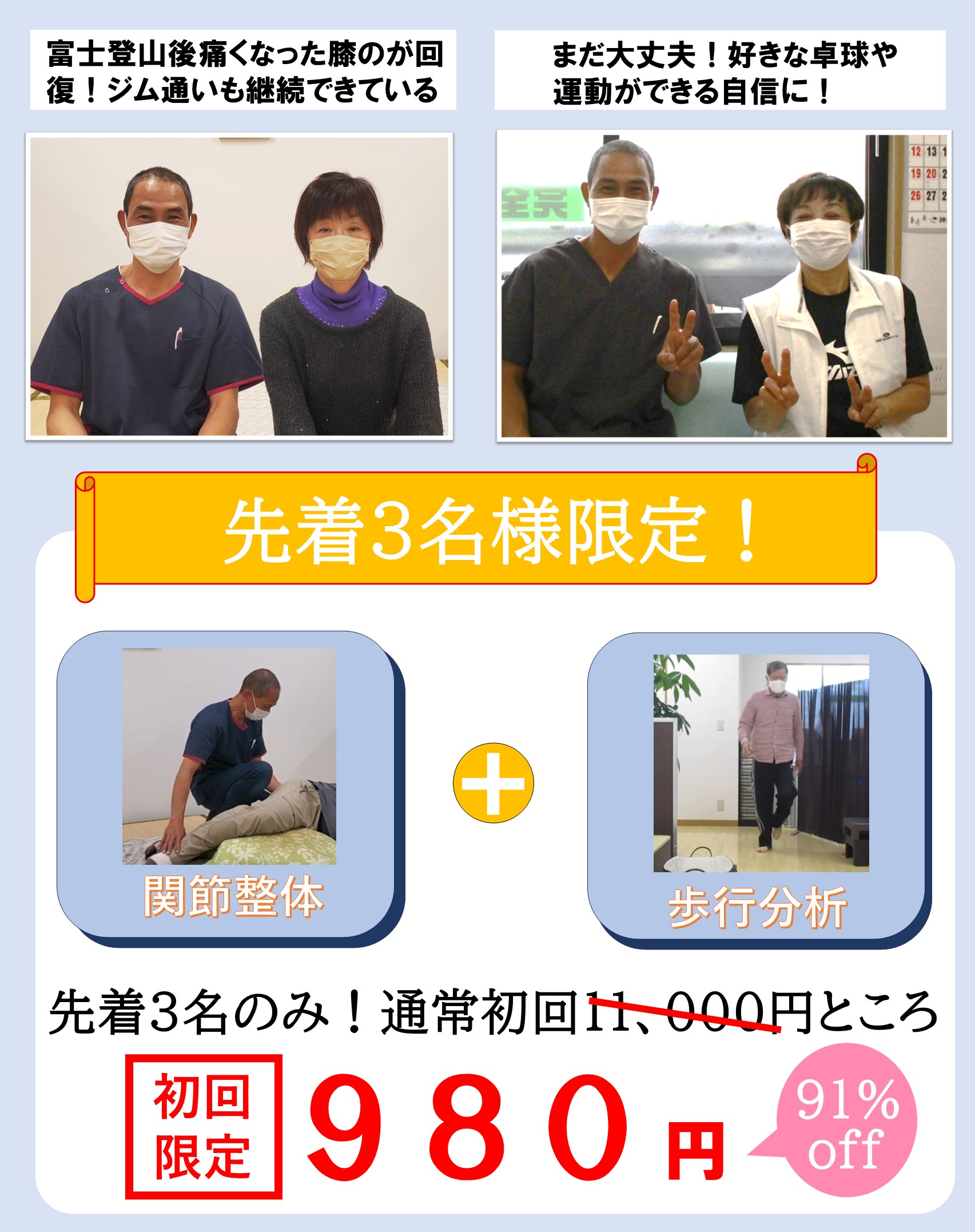 3回で膝の痛み改善 4回目以降メンテナンス
