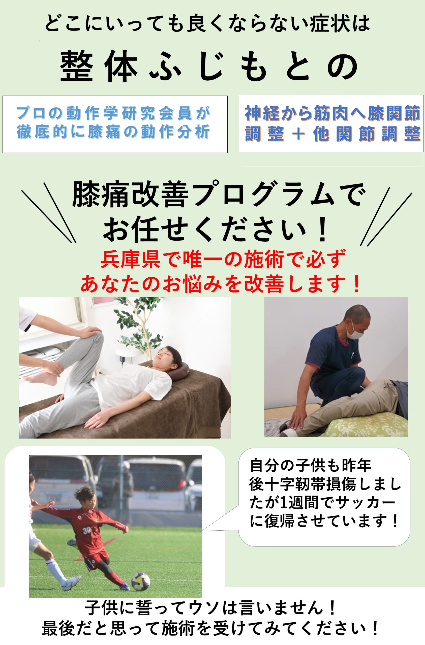私はどこの整体院、整骨院より改善できる自信はありますが、実際に来院される患者さんは私の治療法や治療院のこともホームページだけでは、実際に来て頂かないと分からないと思います。